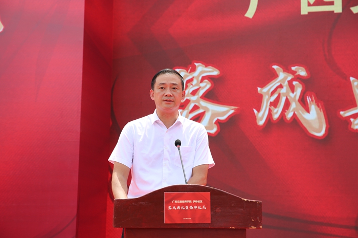 自治區交通(tōng)運輸廳副廳長胡(hú)華平致辭(cí)。他向前來參加伊嶺校區落成典禮(lǐ)暨揭牌儀式的各位領導、各位來賓表示熱烈歡迎和衷心感謝。他指出廣西作為全國首批(pī)交通強國建設試點,交通運輸行業對技術技能人才的需求越來越緊迫,希望學院以伊嶺校區揭(jiē)牌(pái)為契機,搶抓機遇,立足自身辦學優勢,用好(hǎo)用活現代職業教育政策,著力完善(shàn)基礎配套設施,持續強化產教融合、校企合作,大(dà)幹快幹,勇於創新,突出特色,不斷提高辦學育人的質量和水平,打造高水平的職(zhí)業教育實訓基地(dì),創建一(yī)批(pī)特色學科項目,培養更多符合交通強區建設需要的具有現代職業精神(shén)和良好職(zhí)業技能的(de)專業化人才,力爭建成廣西職業教育的“樣板”,加快邁(mài)入全國一流示範性交通技師學(xué)院(yuàn)行列,為全麵建設社會主義現代化國(guó)家(jiā)、實現中華民族偉大複興的中國夢提供有力的交通人才和技能支撐。