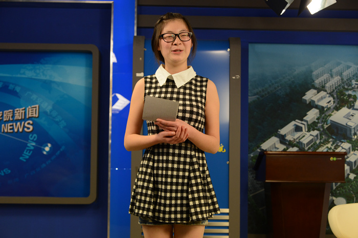 2013級汽車營銷3班的楊思琦一人“分飾”電視主播和場外(wài)記者兩個角(jiǎo)色,自然切(qiē)換,咬字清晰和獨特的主持風格贏(yíng)得了現場評委和觀眾的一致好評。