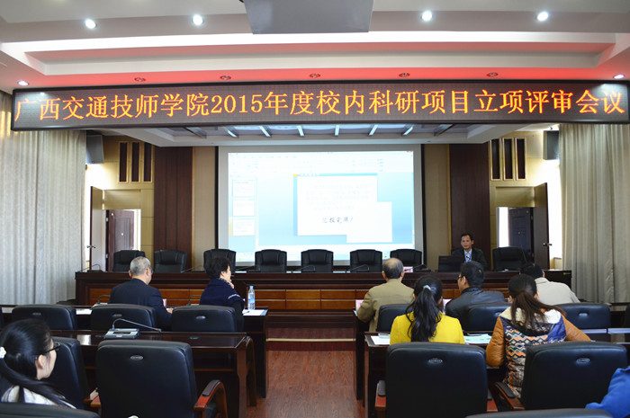 12月17日,2015年度校內科研項目立項評審會議在我院信(xìn)息中心四樓會議(yì)室(shì)召開。項目評審(shěn)組(zǔ)由學院黨委書記(jì)羅華、院長助理鄭超文、汽車工程係樊海林主任、信息與商務係封桂炎主任、汽車工程係高級講師(shī)黃遠雄老師組成。會議由(yóu)教務與科研處唐藝支老師主持。