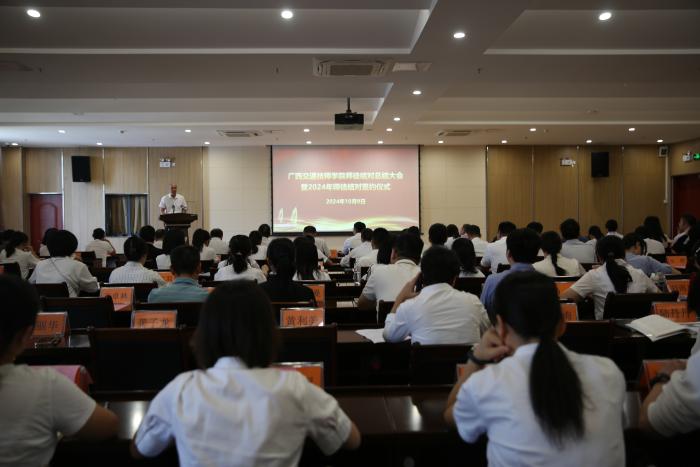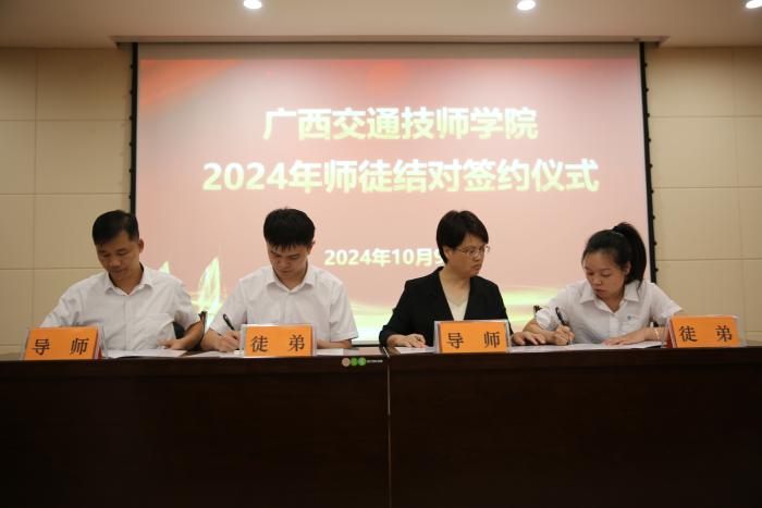 10月9日(rì)下午,廣(guǎng)西交通技師學院師徒結對總結大會暨2024年師徒結對(duì)簽約儀式在綜合樓1619會議室順利召開。學院(yuàn)黨委副書記(jì)、院長賴國秋,黨委委員、副院長(zhǎng)樊海(hǎi)林出席會議並作講話,會議由黨委委員、副院長關(guān)菲明主持。人事科、教務科研科、各係部負責人及72對(duì)結對師(shī)徒參加會議。