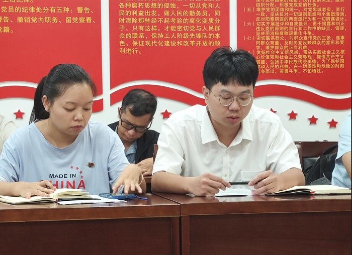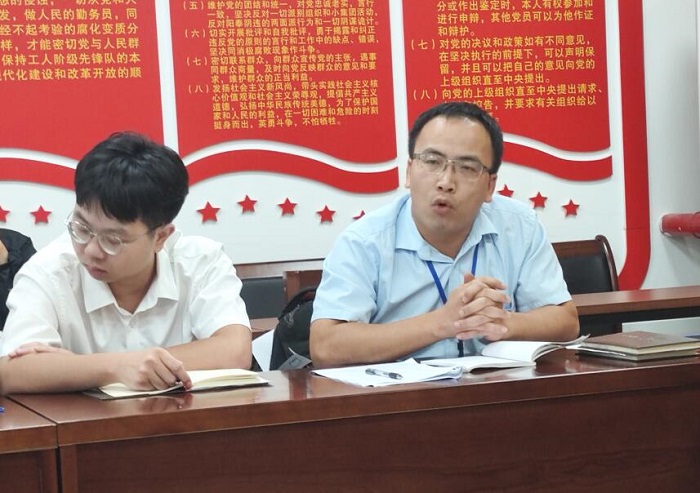 商務服(fú)務係黨員覃荊凱同誌作新(xīn)進教師能力提升的主(zhǔ)題分享