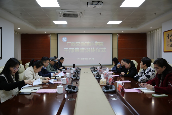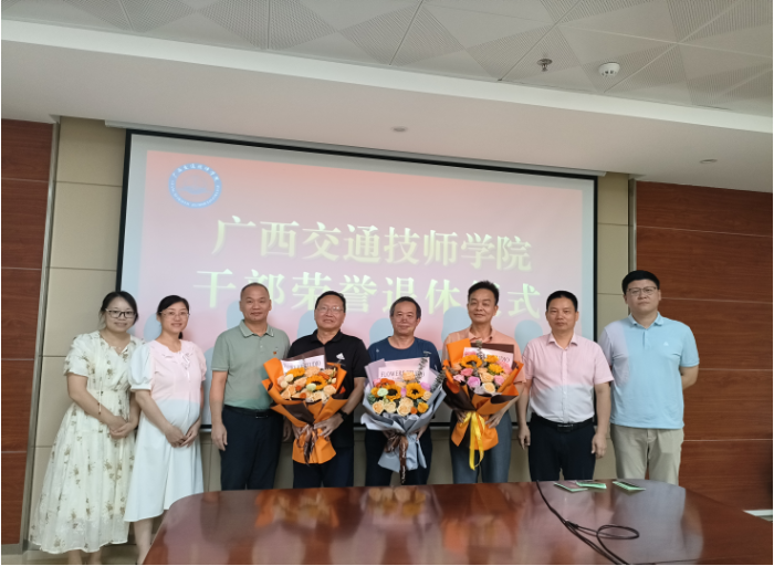 學院本年(nián)度成功舉辦了兩期“幹部榮譽退休儀式”。學院工會分別於3月15日、7月(yuè)5日在(zài)邕武校區綜合樓1524會議室為即將退休的教職(zhí)工(gōng)舉行了“幹部榮譽退(tuì)休儀式”,學院黨委(wěi)書記賴(lài)國秋、副院(yuàn)長兼工會主席黃七零(líng)、人事(shì)科、黨委辦公室、學院辦公(gōng)室、基礎學科部、汽車工程係、交通工程係、質量監(jiān)控中心、工會等部門領導出席此次活動,並贈送了(le)紀念品。