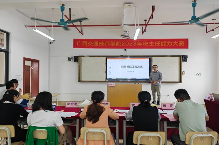 此次班主任能(néng)力大賽分為文本評審和(hé)現場決賽兩個階段。現場決賽,各選手(shǒu)以現場抽簽的(de)形式確定班級活動、模擬情景處置主題和具體團隊內選手分工,經現場備賽後(hòu)依次獨立(lì)向評委進行班級建設方案實施情況介紹、班級活動方案策劃、模擬情景處置方案報告。在答辯環節,選手們沉著應對,在限定的時間(jiān)內回答大賽評委(wěi)提出三個(gè)針對性的問題。