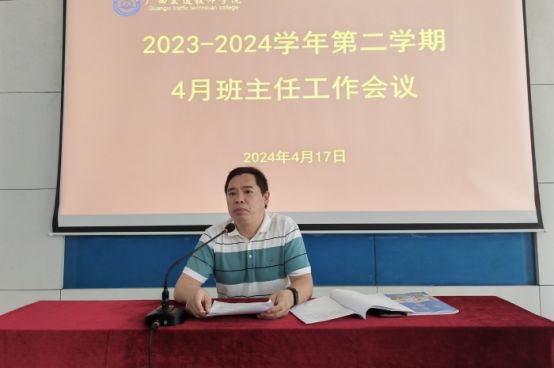 為(wéi)進一步增強班級管(guǎn)理工作的(de)針對性和實效性,提高學校德育工作和班級(jí)管理水平,4月17日下午,學院在邕武校區求知樓階梯教室召開班主任工作會議。各(gè)係分管學生管理工作(zuò)領導(dǎo)和幹事、全體班主任和學生工作(zuò)科工作(zuò)人員參會,會議由學(xué)生工作科科長孫(sūn)祖(zǔ)德主持。