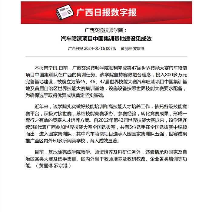 廣西日報: 91.com技師學院 汽(qì)車噴漆項目中國集訓基地建(jiàn)設見成效