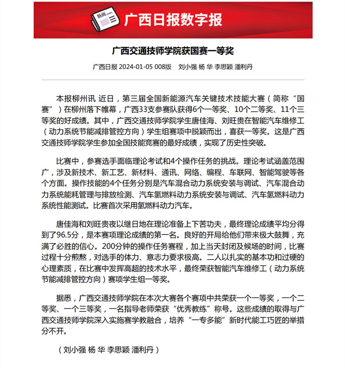 廣西日報: 91.com(tōng)技師學院獲國賽一等獎