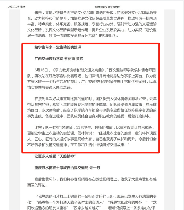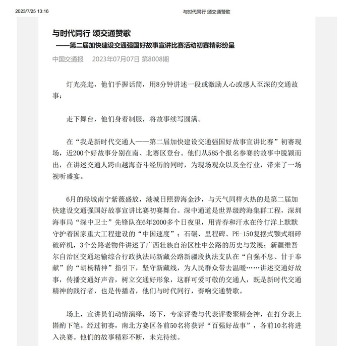 中國交通報:與時(shí)代同行 頌交通讚(zàn)歌——第二(èr)屆加快建設交通強國好故事宣講比賽活動初賽(sài)精彩紛(fēn)呈