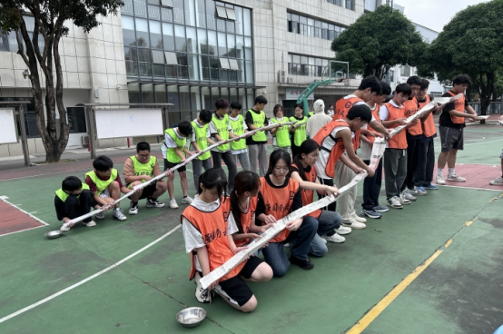 本次素質拓展活動項目(mù)包含:合(hé)力傳(chuán)遞、背對背擁抱、解手鏈、穿越火線、老爺(yé)車(chē)。這些項目不僅是對記憶與反應的考驗,更是團隊間配合與默契程度的較量。智慧與速度交鋒,團隊逐漸破冰,相互鼓勵,羞澀(sè)拘束悄然消散。操場上,大(dà)家全神貫注、運籌帷(wéi)幄,各(gè)種精彩的戰術令人拍手叫絕。每一次的決策(cè)運行,都是(shì)團隊配(pèi)合協(xié)商的生動寫照,更是同學們綜合能力的精彩展現(xiàn)。