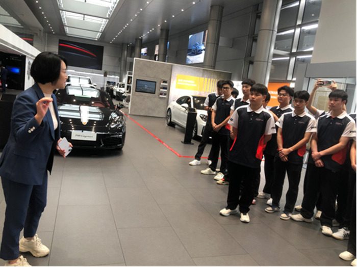 通過企(qǐ)業現場解說,同學們對保時(shí)捷的曆史文化發展有了更深刻的了解,對目前保時捷公司在售車型、服務接待、維修(xiū)服(fú)務車(chē)間的作業流程及公司(sī)各部門的職(zhí)能(néng)分工等情況有了初步的認識,對即將開啟的保時捷實習生活有很(hěn)好的指導作用。
