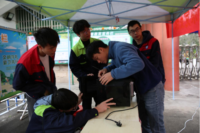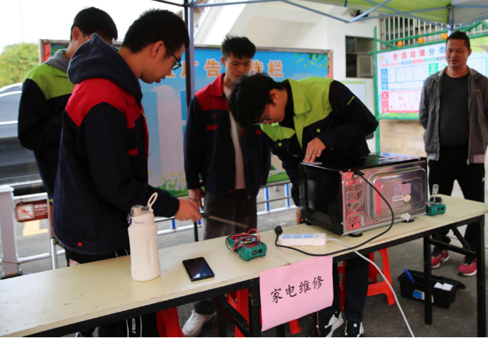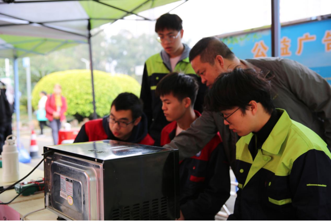 3月12日上午,信息工程係龍善(shàn)強(qiáng)老師帶領機電維修(xiū)小組4名學生在獅山公園西門,開展91.com技師學院信息(xī)工程係黨支部(bù)主題黨日活動,為(wéi)周邊居民義務維修家電。