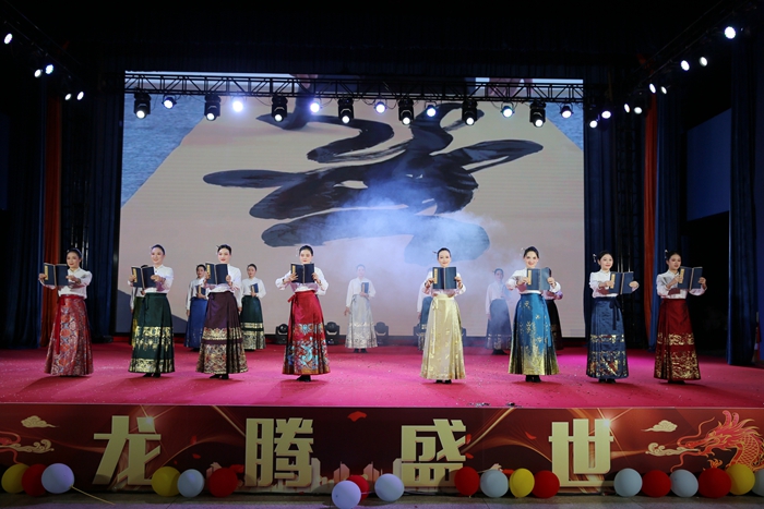 晚會設置了(le)歌頌祖國、青春校園、迎春納福等三個篇章,涵蓋舞獅、合唱、小品(pǐn)、啦啦(lā)操等,表彰了最美(měi)教師(shī)、最美班主任、最美教育工作者30人(rén)。