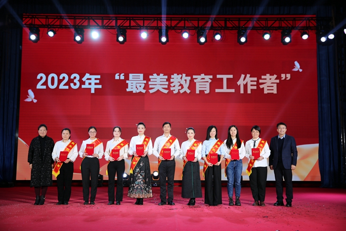 領導為最美教育工(gōng)作(zuò)者頒獎