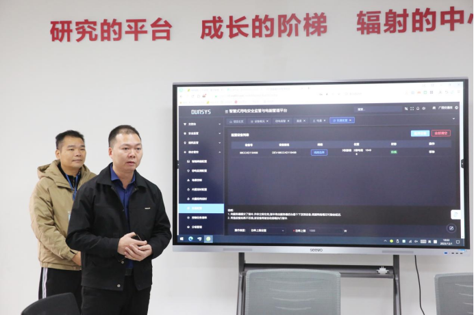 後勤服務科科長陸潤宗講解學生宿舍智能電控係統(tǒng)的管理