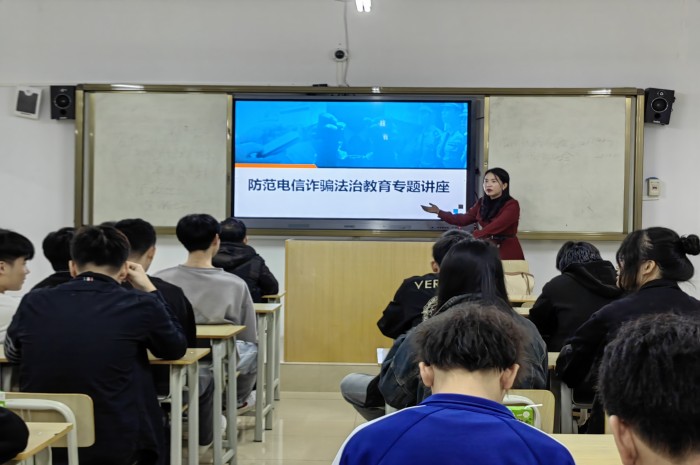 11月(yuè)22日,學院利用周三(sān)晚上“大思政課”第二課堂,覆蓋2023級新生班級,組織開設反電(diàn)信詐騙法(fǎ)治教育第二課堂。