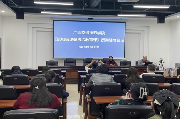 11月22日,基礎學科(kē)部(bù)牽頭(tóu)組織“大思政課”第(dì)二課堂(táng)講師團隊在邕武校區綜合(hé)樓二(èr)樓會議室召開反電信詐騙法治教育第二課堂授前輔導會,跟進貫徹落實國家打擊治理電信網絡新型違(wéi)法犯罪工(gōng)作部署,持續(xù)深化(huà)學院學生教育管理工作預防校園電信詐騙違法犯罪基(jī)礎學科部副主任許宜(yí)昕主持會議,審計科(kē)副科長(zhǎng)黃有洪參會並作說課輔導。