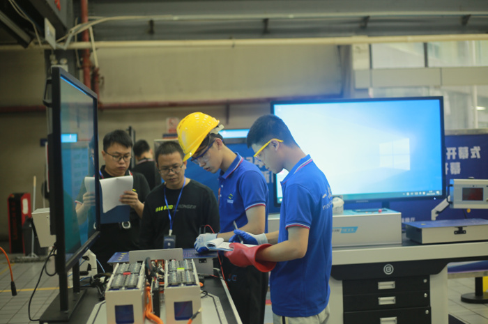 我院憑借著豐富的技能競賽辦賽經驗,經過前期精心策劃,周密部署,競(jìng)賽於10月27日正式開幕。競(jìng)賽采取理論知(zhī)識和技能操作相結合(hé)的方式,職工組技能操作項(xiàng)目(mù)為新能源汽車故障診斷與排(pái)除,學生(shēng)組(zǔ)技能操作項目為新能(néng)源汽車故障診斷與排除、儲能及(jí)充電裝置運維(wéi)與檢測。