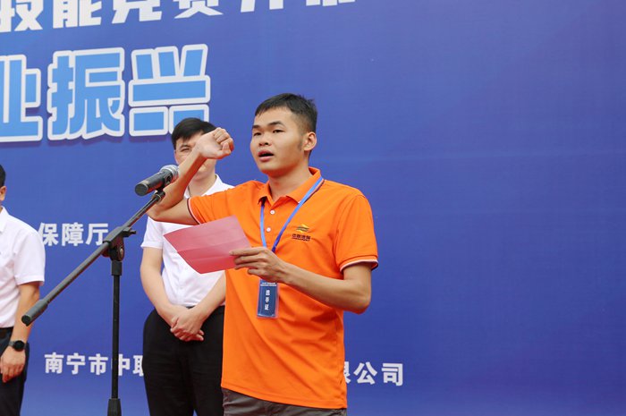 新能源賽項競(jìng)賽選手代表薛(xuē)華(huá)傑宣誓(shì)