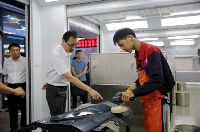 開幕式後,與會領導一行在學院領導的陪同下參觀了大賽比賽工位、飛機維修實訓基地、汽車(chē)噴(pēn)漆世賽基地、汽車技術世賽基地等實訓場所。
