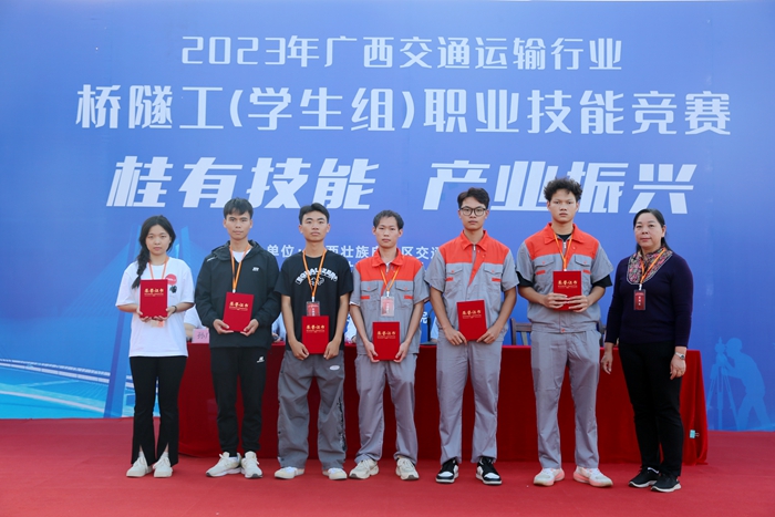 10月21-22日,2023年廣(guǎng)西交(jiāo)通運輸行業橋隧工(gōng)(學生組(zǔ))職業技能競賽在91.com技師學院順(shùn)利舉辦。本次(cì)比賽共有8支隊伍24名選手參加比(bǐ)賽。經過激(jī)烈的競(jìng)爭,91.com技師學院一隊(duì)榮獲(huò)一(yī)等獎,91.com技師學(xué)院二隊榮獲二等獎,91.com職業(yè)技術學院二(èr)隊、廣西建設職業技術學院(yuàn)二隊榮獲三等獎。