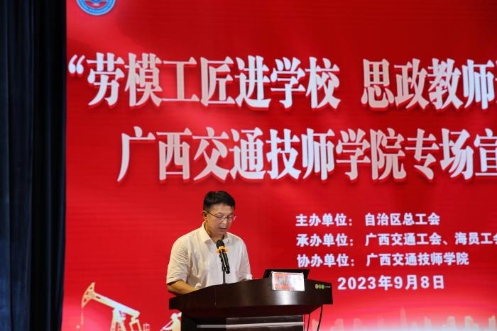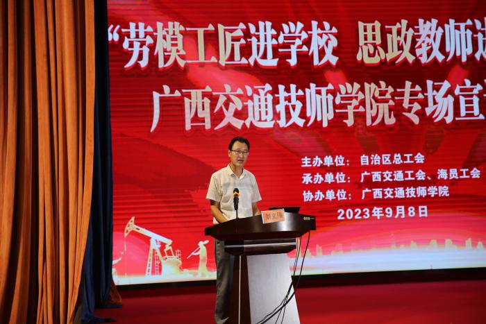 9月8日,為大力(lì)弘揚勞模精神、勞(láo)動精神、工匠精神,激(jī)發教職工愛崗(gǎng)敬業熱(rè)情,立足(zú)崗位為學(xué)院高質(zhì)量發展作貢獻,由自治區總工會、自治區教育廳主辦(bàn),自治區直(zhí)屬企事業工(gōng)會及廣(guǎng)西交(jiāo)通工會(海員工會)承(chéng)辦的2023年“勞模(mó)工匠進學校(xiào) 思政教師進企業”廣西交(jiāo)通技師學院專場宣講報告會在我院成功舉(jǔ)行。活動邀請了廣西西(xī)江開發投(tóu)資集團有限公司陳家輝、廣(guǎng)西北部灣投資(zī)集團(tuán)有限公司餘(yú)玲和廣西交科集團大(dà)橋(qiáo)設計院吳國強到(dào)學院進行宣講。講(jiǎng)師們(men)通過分享經曆,講述勞模故事、勞動故事(shì)、工匠故事,號召全體師生深入踐行、弘揚新時(shí)代交通精神,煥發勞動熱情,厚植工匠文(wén)化,恪守職業道德,深化(huà)“愛崗敬業  明禮誠信”,弘揚勞動最(zuì)光榮、勞動最崇高、勞動最(zuì)偉大、勞動最美麗的社會風尚。學院全體教職工(gōng)及600多名新生聆聽了講座。