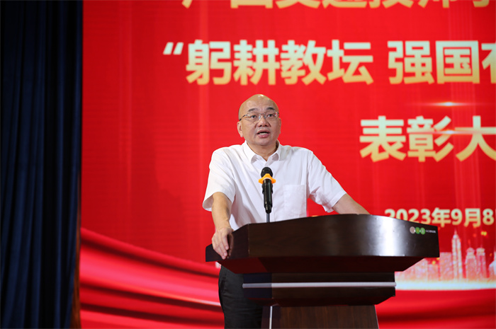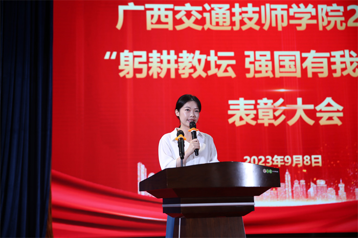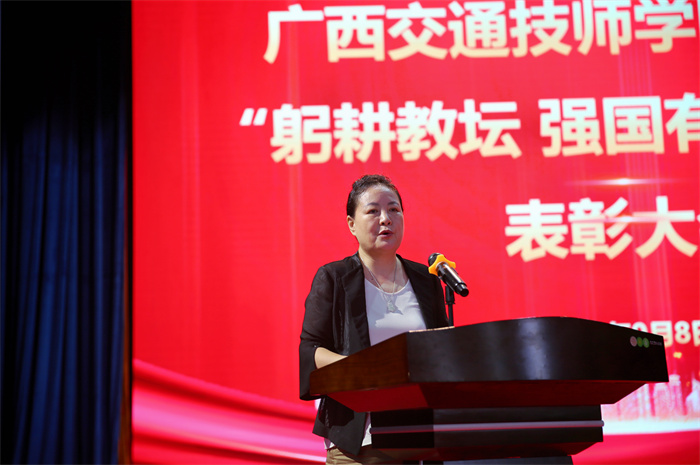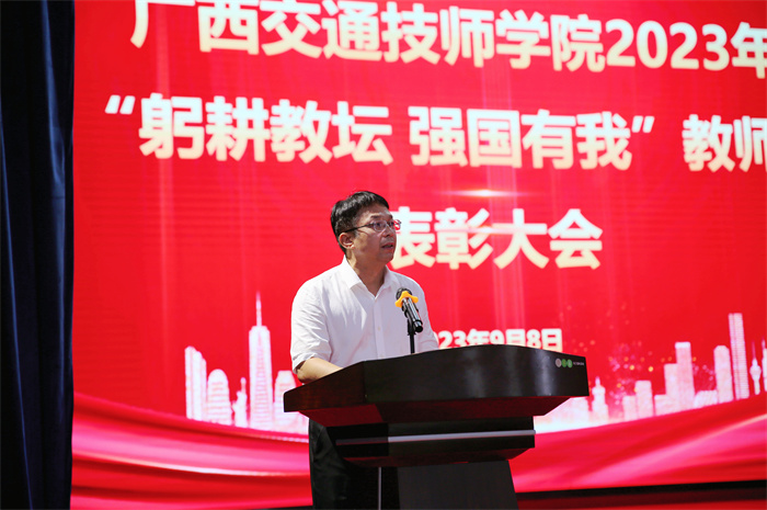陳津維向辛勤工作在交通職業教育戰線上(shàng)的(de)全體教職工表示節日的祝福和親切的問候,對剛剛(gāng)獲得(dé)表彰的優秀教師、優秀教育工作者和(hé)優秀班主任表示熱烈(liè)的祝賀。他指出廣西(xī)交通技師學院作為全區(qū)唯一(yī)一所交通(tōng)運輸類技(jì)師學院,要(yào)以“雙(shuāng)優計劃”為契機(jī),搶抓機遇,勇於創新,力爭把學院建設成為(wéi)交通職業教育的“廣西樣板”;加快推進產(chǎn)學研用深(shēn)入融合,實現(xiàn)學(xué)院的創新發展;聚焦交通強區建設,主動融入新(xīn)發展格局,辦好(hǎo)優勢(shì)專業,培養更多符合交通強區建設需要的具有工匠精神和高水平技能的專業型人才,為服務廣西(xī)經濟社會發展貢(gòng)獻交通力量。