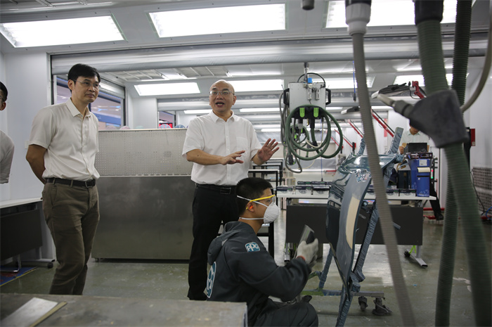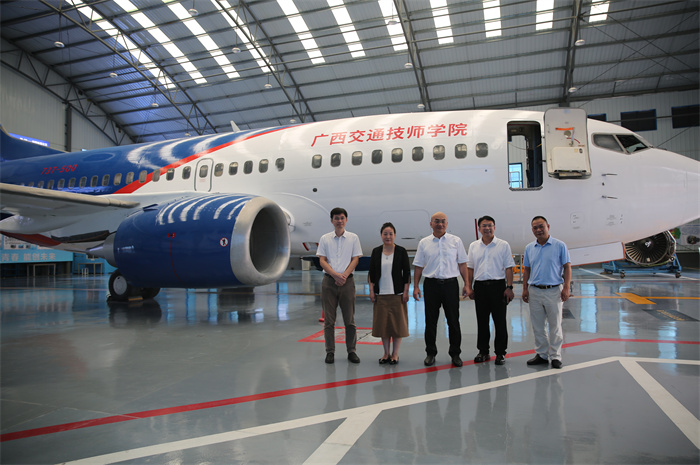 與(yǔ)會領導參(cān)觀學院飛機維修實訓基地