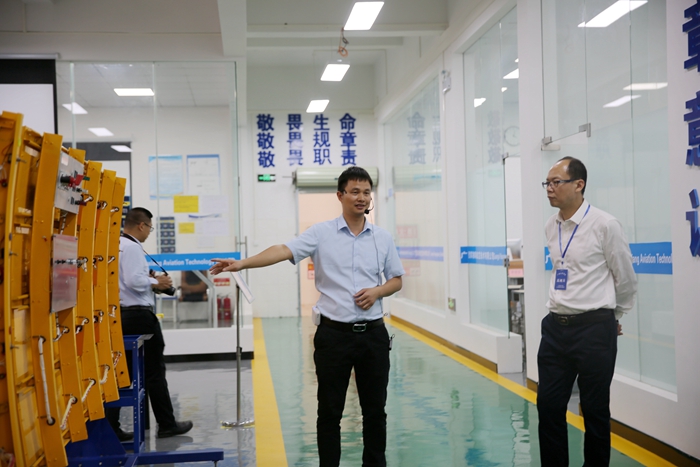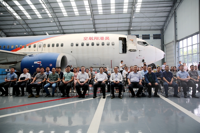 陸曉明副廳長及學員們在我院領導陪同下觀看飛機維修解說