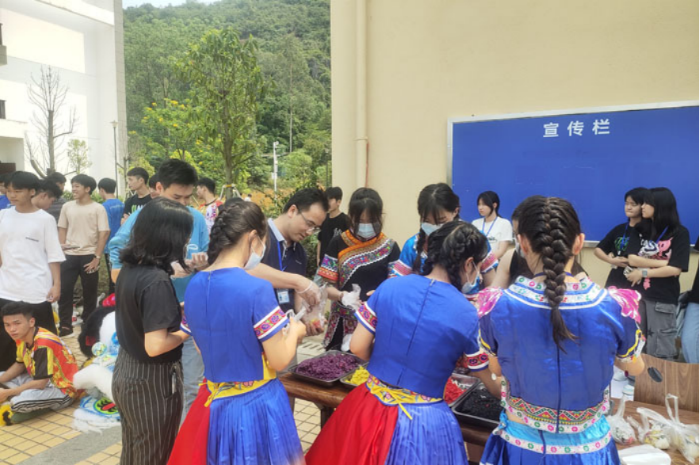 在活動(dòng)現場設置了(le)民族(zú)歌曲有獎競猜、茶藝展示、“鬥蛋”“千人竹竿舞”等遊(yóu)戲環節,科普了五色糯米(mǐ)飯原材料、展示五色糯米飯製作工藝流(liú)程,並為同學們提供五色糯米飯、艾草糍粑等壯鄉美食,現場傳來陣陣歡聲笑語。