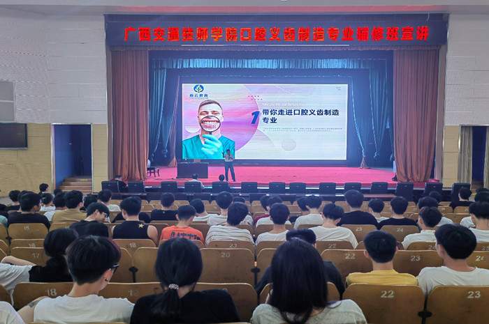 廣西(xī)焱雲教育科技有限公司周彬(bīn)作為主(zhǔ)講老師今天的腳步,一步一步鋪向未來為切入點,分別對口腔義齒製造專業、工作環境、發展前景和人(rén)才需求等方麵進行闡述,並對同學(xué)的職業生涯規劃作了簡要指導為了讓同學們進一步了解口腔義齒知識,講座中特別設立互動提問環節,與會同學踴躍發言周彬老(lǎo)師對同學們提(tí)出的問題一一給予解答現場氣氛活躍