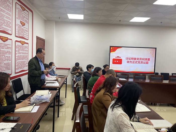 會議(yì)按照黨員發展程序進行,預備黨員祝瑞堇同誌在會上宣讀《轉正申請書》,認真匯報自己在預備期間思想、工作和生活的(de)情況及(jí)今後努力的方向。隨(suí)後,2名入黨介紹人就(jiù)預備黨員的預備期表現及能否轉正提(tí)出建(jiàn)議與會黨員(yuán)就祝瑞堇同誌能否按期轉(zhuǎn)正(zhèng)進行了充分討論,通過(guò)記名投票方式表決,一致同意祝瑞堇同誌轉為中共正式黨員