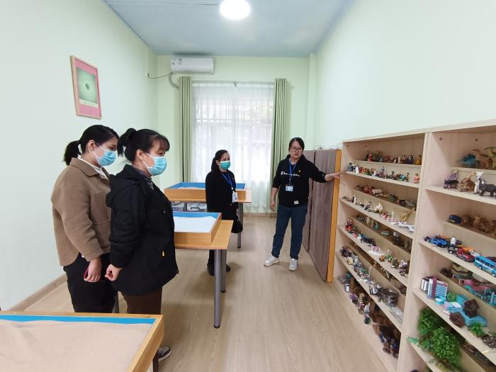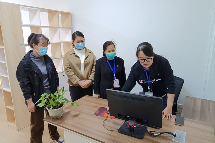 韋豔芳簡要介紹了學院的心理輔導中心情況(kuàng),就學院學生的(de)心理健(jiàn)康教育(yù)工作的開展情況進行了重(chóng)點闡述,表達了學院與醫院之間開通學生就診“綠色通道”、加(jiā)快學生心理健康教育和谘詢救治的迫切希望(wàng)。並帶領範喜英一行參觀了學院心理輔導中心的教師辦公室、心語間、沙盤(pán)遊戲室、情緒宣泄室、團體輔導(dǎo)教室等場所(suǒ),現場演示學院瑞格係統、MS心(xīn)理測(cè)試工具箱、音樂放鬆按摩治療椅等專業設備。
