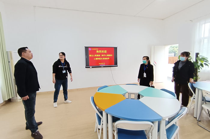 3月1日,學院與南寧市第五人民醫院(yuàn)在(zài)求學樓二(èr)樓心理輔導中心開展心理健(jiàn)康誌願服務合作交流。南寧市第五人民醫(yī)院(yuàn)醫務社(shè)工暨誌願服務部主任、心理(lǐ)科第一黨支部書記、大心理科護士長範喜英及隨(suí)行醫師、我院學生工作(zuò)科科長孫祖(zǔ)德、副科長(zhǎng)韋豔芳及(jí)醫校兩方(fāng)代表參加交流。