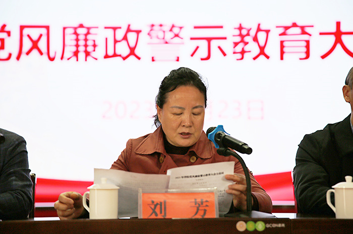 學院黨委副書記、紀委書記韋昌甲宣讀處分文件