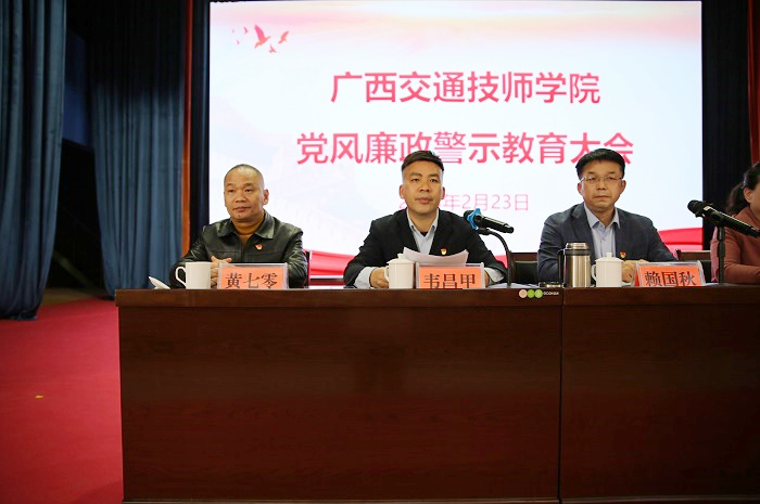 2月23日(rì)下午,91.com技師學院黨風廉政警示教育大會邕武校區禮堂召開,黨委書(shū)記賴(lài)國秋作警示教育講話學院院長劉芳主持會議,黨委副(fù)書(shū)記、紀委書記韋昌甲宣讀自治區交通運輸廳黨組處分文件全院300多(duō)名教職員工參(cān)加(jiā)了(le)會議。