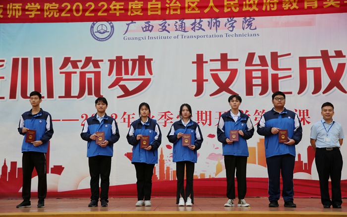 為了全麵貫徹黨的教育方針,鼓勵學生刻苦學習(xí),學院積極推進資助育人工作,組織開(kāi)展2021-2022學年自治區人民政府中等職業教育獎學金評定工作(zuò),龍佳嫻、鄧先泉、富俊、陳武佳、鄧文靜、陸昊等156名同學(xué)獲自治區人民政府獎學金。11月28日上午,學院(yuàn)在燈光球場(chǎng)舉行2022年自治區人民政府獎(jiǎng)學金(jīn)頒獎儀式(shì)。學院(yuàn)黨委副書記、紀委(wěi)書(shū)記韋昌甲為獲獎學生代表頒(bān)獎,全體師生參(cān)加頒獎(jiǎng)儀式。