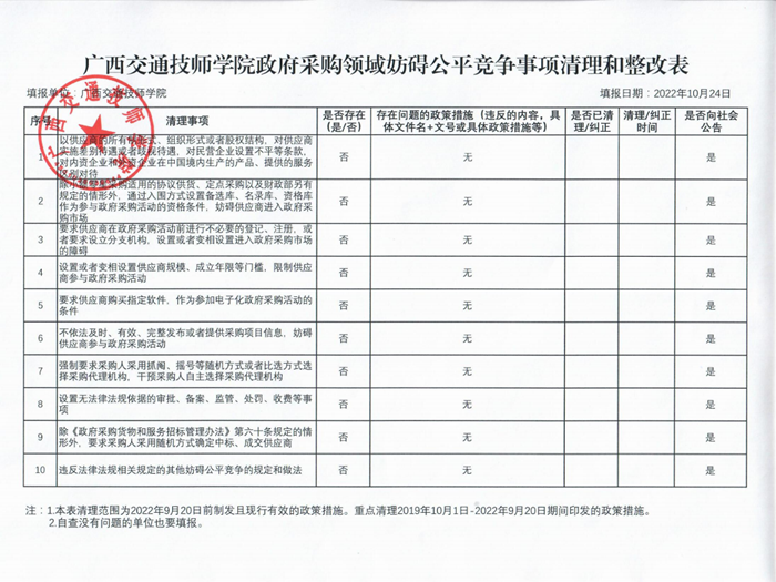 91.com技師學院政府采購領域妨礙公平競爭事項清理和整改表(biǎo)