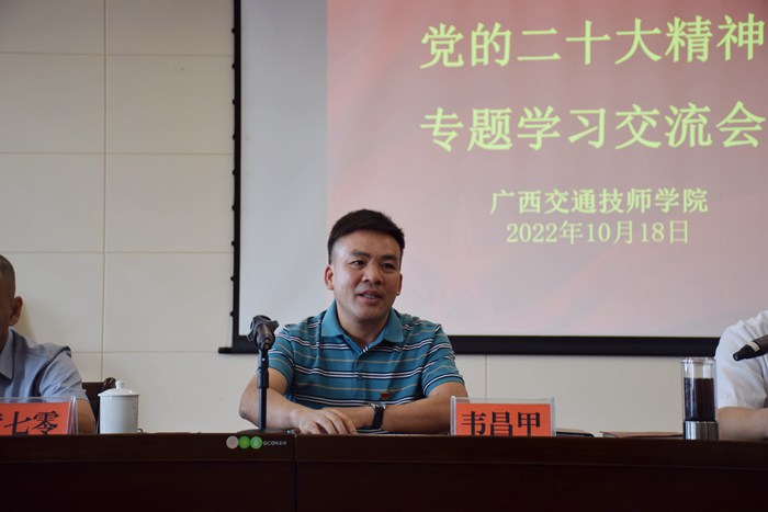 會上,學院副院長關菲明,黨委副書記、紀委書記韋昌甲,副院長樊海林、黃七零,副(fù)處級幹部陸天雲分別圍繞學習(xí)貫徹黨的二十大精神,結合分管領域工作實際交流心得體會。