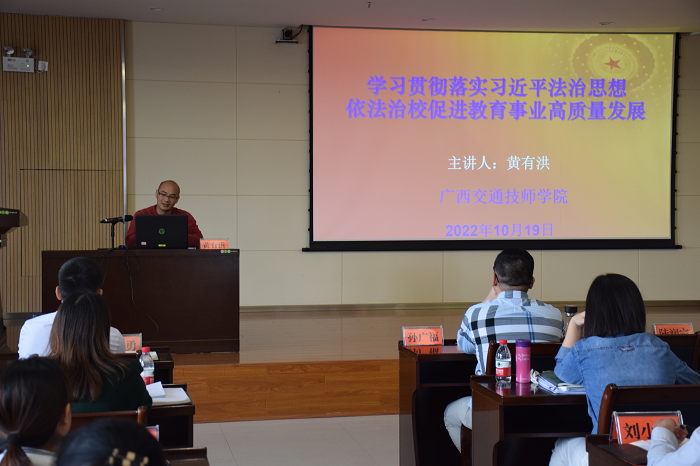 為深入學習和貫徹(chè)落實黨(dǎng)的二十大精(jīng)神,提升學院全體中(zhōng)層幹部對習近平法治思想的核心要義、精神實質和實(shí)踐要求(qiú)的認識,10月19日,學院組織(zhī)召開習(xí)近平法治思想(xiǎng)專題學習(xí)會。本次專題學習由學院審(shěn)計科副科長黃有洪(hóng)主講,全體中層以上領導幹(gàn)部參加。