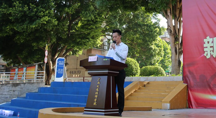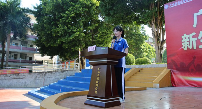 新生班主任代表潘(pān)琦遠上台發言