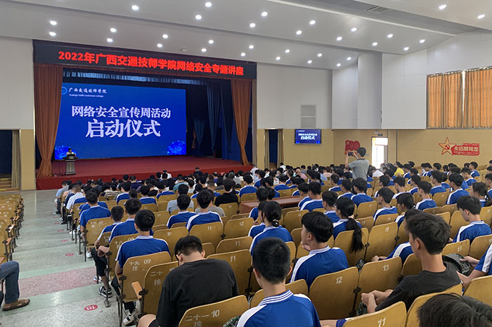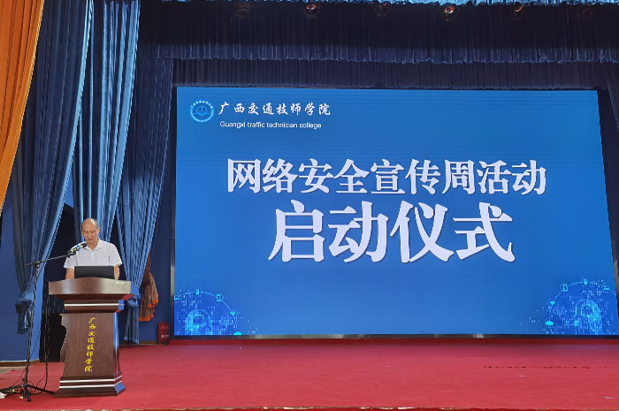 9月5日(rì),在學院信息中心組織下,2022年國家(jiā)網絡安(ān)全宣傳周活動啟(qǐ)動(dòng)儀式在學院禮堂順利舉行,學院副院長(zhǎng)關菲明出席並發表(biǎo)講話。廣西(xī)工(gōng)信廳信息安全測評中(zhōng)心產學研基(jī)地副主任趙洪剛為全院師生進行網絡安全專題講座。