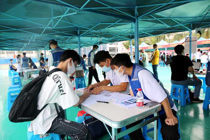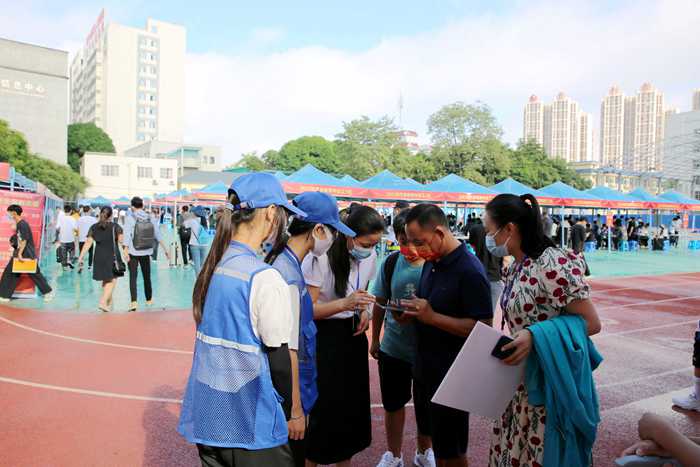 工作人(rén)員及(jí)誌願者為新生及家長解答疑惑