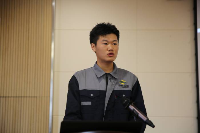學生代表19競賽班佀峰宇同學向大家分享本次參賽的過程(chéng)及收獲,並承諾在接下來的備(bèi)賽中,製訂(dìng)周密的訓練(liàn)計劃,努力提升技(jì)術技能,以飽滿(mǎn)的熱情、積極的(de)心態代表廣西隊迎戰全國職業院校技能大賽汽車機電維修賽項。