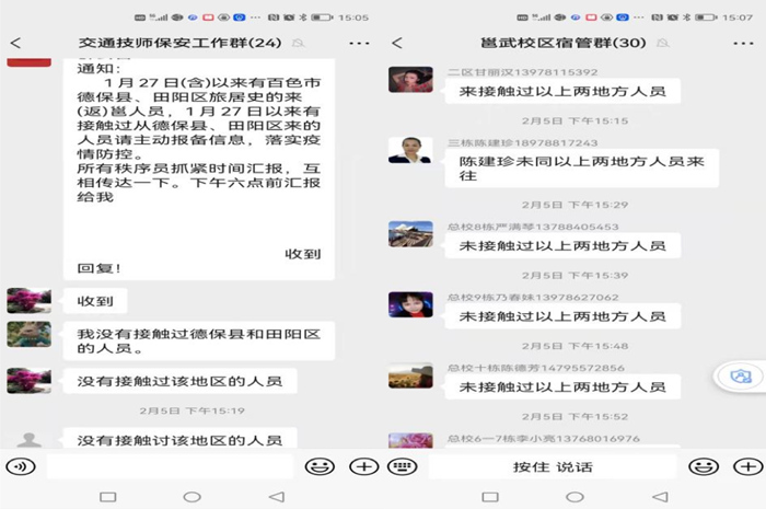 三是從嚴從緊抓好各校區校門管(guǎn)控工作。利用閘門、護欄等,對出入人員(yuán)嚴格實行“三碼”聯查、戴口罩(zhào)、測體溫(wēn)、查詢信息。對外來人員(車輛)進行登記管理,期間外(wài)來人員、車輛非必要不允許進入學校等管理區域。發(fā)現異常時按(àn)要求立即(jí)處理(lǐ)並及時向上級匯報。
