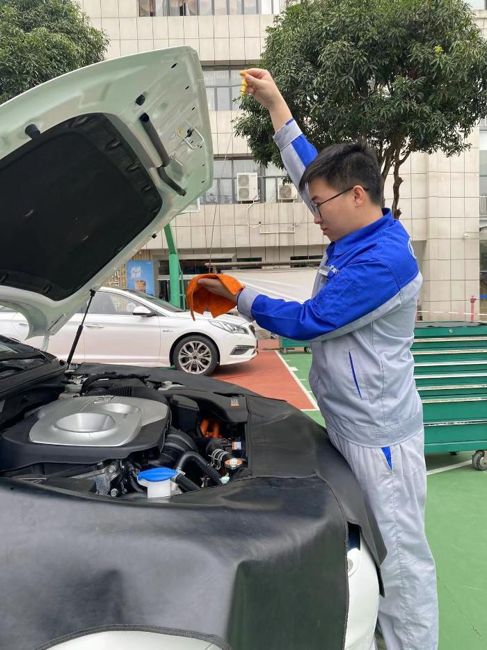 本次活動主要有“學生維修技能展示”、“北京現代熱銷車(chē)型(xíng)營銷推廣展(zhǎn)示”和“車輛保養檢(jiǎn)查技能展示”三個(gè)環節(jiē)。活(huó)動現場,21級北京現代機修班同學以規範、整齊的維護作業展現出飽滿的“精氣神(shén)”,21級北京現代營銷班同學(xué)現場活學活用(yòng)銷(xiāo)售技巧展現(xiàn)出紮實的基本功,在企業心中(zhōng)留下了良好的印象。在車輛檢查保養技能展示環節(jiē)中,企業維修技師演示了實際維修過程,並強調(diào)維修中的注意事項,讓(ràng)學院師生體驗實際維修作業中的精細化。