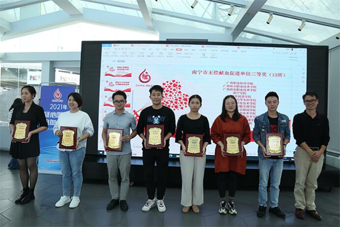 11月5日,南寧市中心血站開展(zhǎn)“凝心聚力 熱血領航”駐邕大中專(zhuān)院校聯誼活動。廣(guǎng)西首府南寧獻血委員會辦公室對2020年促(cù)進無償獻血事業持續(xù)健康發展的大中專院校給予表彰,我院榮(róng)獲2020年駐邕大中專院(yuàn)校(xiào)無償獻血促進單位三等獎。
