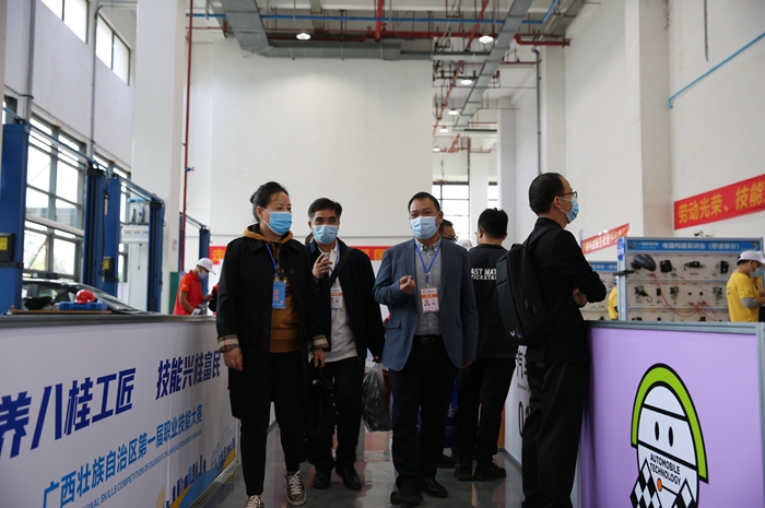 10月19日上(shàng)午,由廣西壯族自治區人力資源和社會(huì)保障廳主辦、柳州市人民政府承辦(bàn)、廣西壯族自治區總工會協辦(bàn)的廣西壯族自治(zhì)區第一屆職業技能大賽在廣西(柳州)職業(yè)技能公共實訓基地舉行。我院9名教師(shī)擔任(rèn)7個賽項裁判員,12名師生選手參加7項世賽選拔項目(mù)(汽車技術、信息網絡布線、3D數字遊戲藝術、貨運(yùn)代理、網站設計與開發、機電一體化、機器人係統集成)和2項國賽項目( 新能源(yuán)汽車智能化技術、電工),由學院副院長樊海林作為領隊參賽。學院院長劉芳參加開幕式,並(bìng)在現(xiàn)場觀摩比賽。