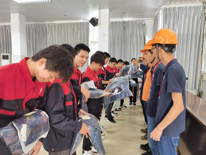 廣西歐日電梯服務集團有限公司保培訓團隊向訂單(dān)班學生頒發工作服