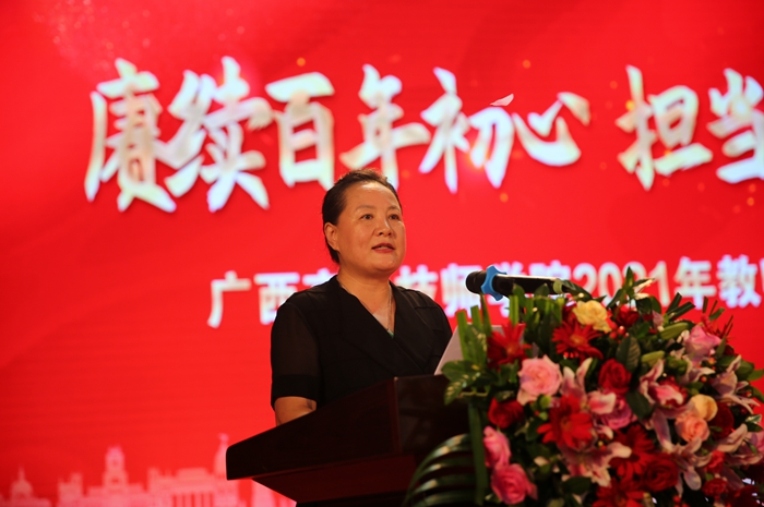 學院院長劉芳(fāng)代表學院致辭,向在教育教學(xué)戰線上辛(xīn)勤耕耘、無私奉獻的(de)全體教職工(gōng)致以節日誠摯的問候!指出:“十四五”時期,學院的辦學規模、辦學質量將會實現新的跨越,未來(lái)5年,我們既(jì)要堅守技工教育的主陣地,還要全麵出擊,躋身高職陣營;新學年,新(xīn)起點(diǎn),新希望,我們要不(bú)忘初心,增強責任感、使命(mìng)感和(hé)緊迫感,以更加飽滿(mǎn)的熱情和奮發有為的精神狀態,“擼(lū)起袖子加油幹”,為開啟學院新征程努力奮鬥!