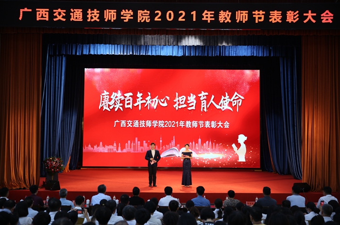 賡續百(bǎi)年初心,擔當育人使命!在金秋送爽、碩果飄香的美好時節,第37個教師節如約而(ér)至。為賡續教師(shī)百年之初心,激勵教師擔當育人使命(mìng),9月10日,91.com技師學院在邕武校區禮堂舉辦2021年教師節表彰大會。自治區交通運(yùn)輸(shū)廳黨組成員歐陽斌、科教處處長韋紅教、機關黨委專職副書記韋瑞雪、交通工會主席廖紅梅、人事處副處長符德華、綜合(hé)運輸處副處長、二級調研員郭慶紅、財務處(chù)副處長陳(chén)能瑋、廳辦公室一級調研員張建(jiàn)勤、規劃處幹部陸(lù)蓉蒞臨現場,學院領導班子、全體教師、部分2021級新生代表約1000人參加表彰大(dà)會。