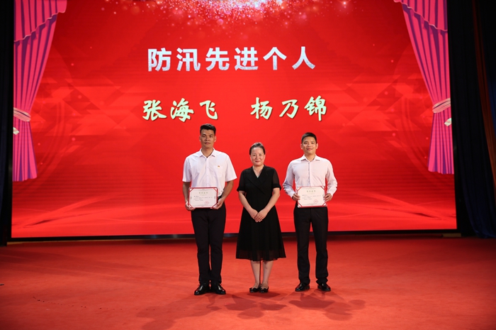 學(xué)院院長劉芳向“防(fáng)汛先進(jìn)個人”稱號獲得者頒發榮譽證書